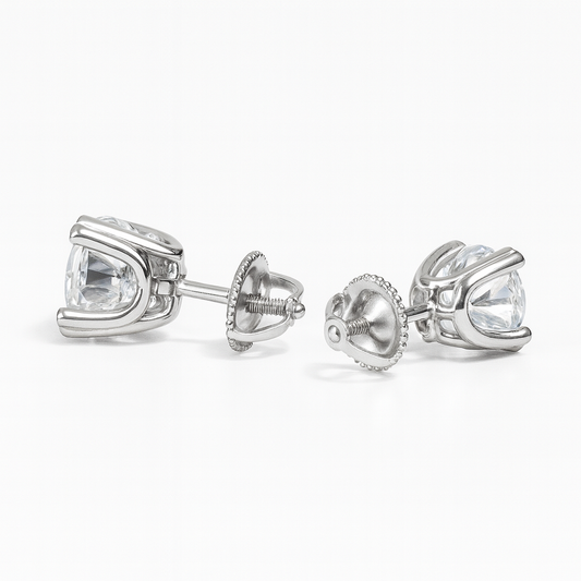 Moissanite Stud Earrings Round Cut - Size 3mm-8mm - 925 Silver or 14K Gold Plated Over 925 Silver